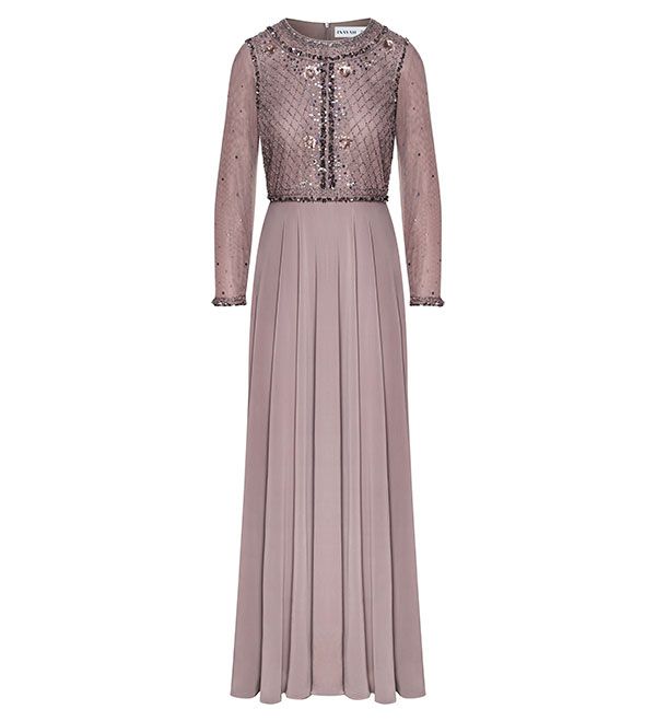 Evoking surreal glamour, the Tanisha dress embraces intricate beading on the bodice and sleeves reminiscent of jewelled leitmotifs. A swaying full layered maxi skirt within a luscious multi-textured tone epitomise its elegance.