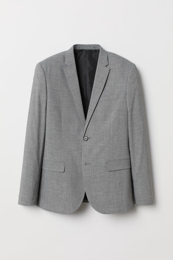 Single-breasted blazer in woven stretch fabric with narrow, notched lapels. Chest pocket, front pockets with flap, and an inner pocket. Decorative buttons at cuffs and a vent at back. Lined. Skinny Fit – slightly shorter style, shaped at chest, tapered sharply at waist, combined with narrow shoulders and sleeves for a completely tailored silhouette.