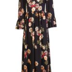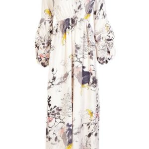 Mimi V Neck Rouched Sleeve Floral Maxi Dress